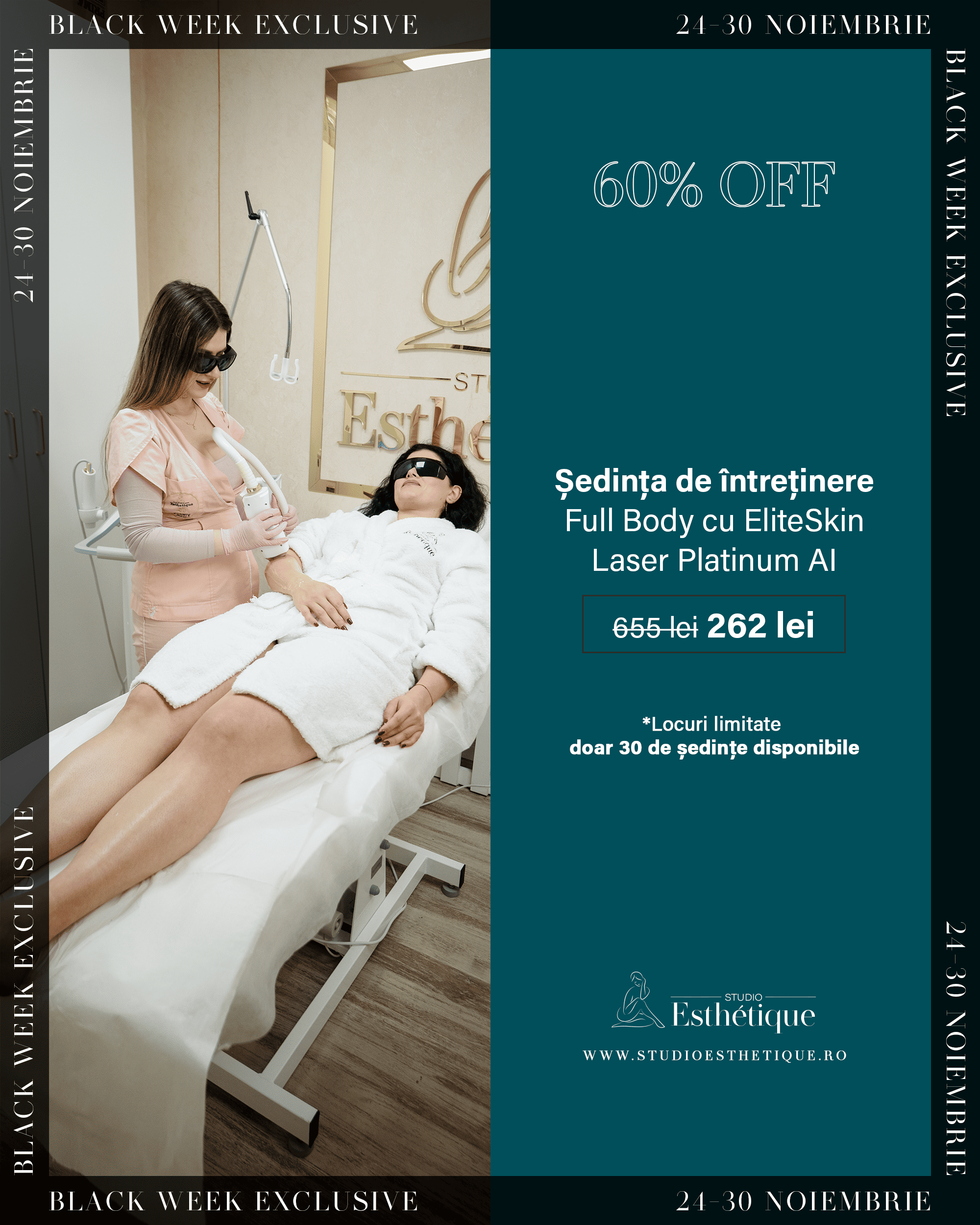 Descoperă ofertele speciale disponibile în această lună la Studio Esthétique! Bucură-te de servicii de înfrumusețare la prețuri promoționale și beneficii unice. Grăbește-te, reducerile sunt valabile doar pentru o perioadă limitată!
